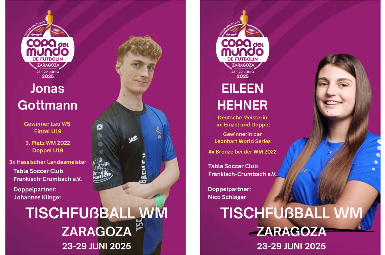 Fränkisch-Crumbacher Nachwuchs greift nach Medaillen Saragossa/Fränkisch-Crumbach. Vom 23. bis 29. Juni 2025 verwandelt sich die spanische Stadt Saragossa in das Mekka des Tischfußballsports